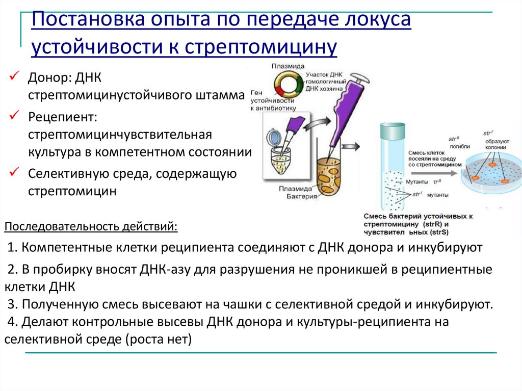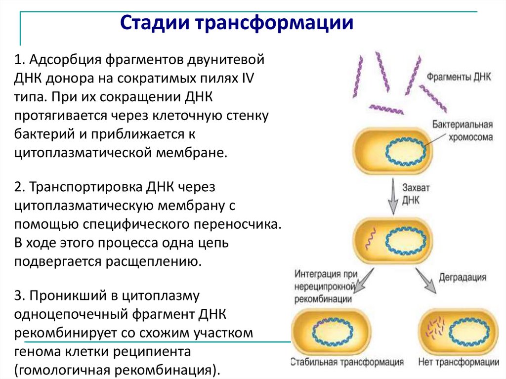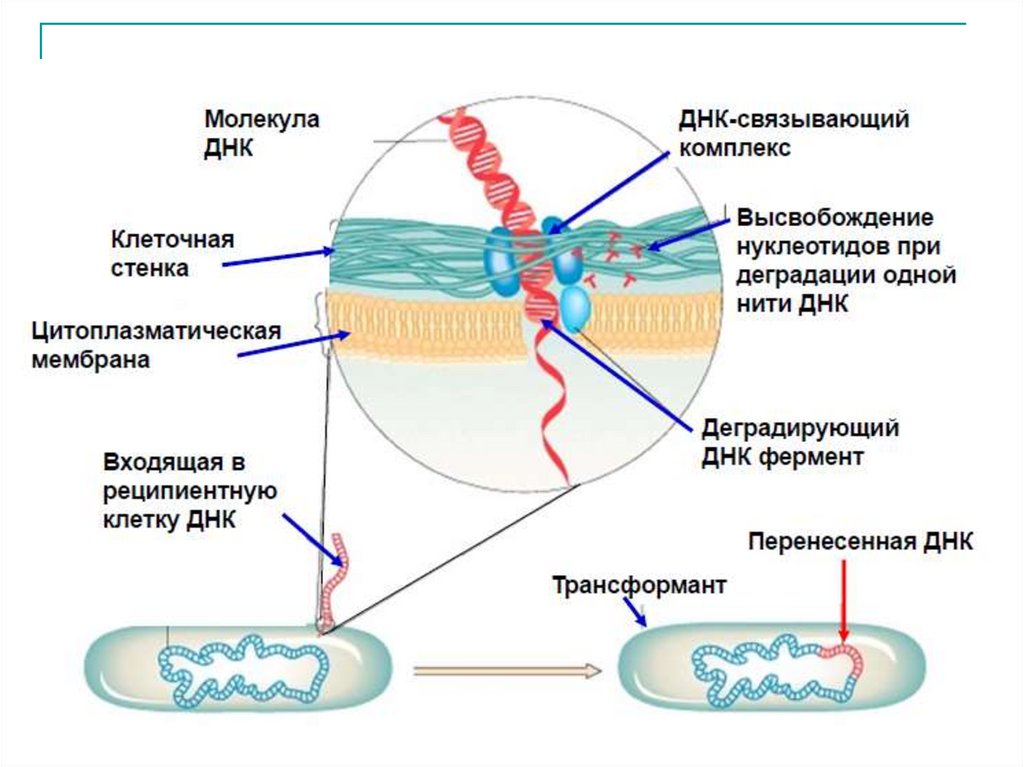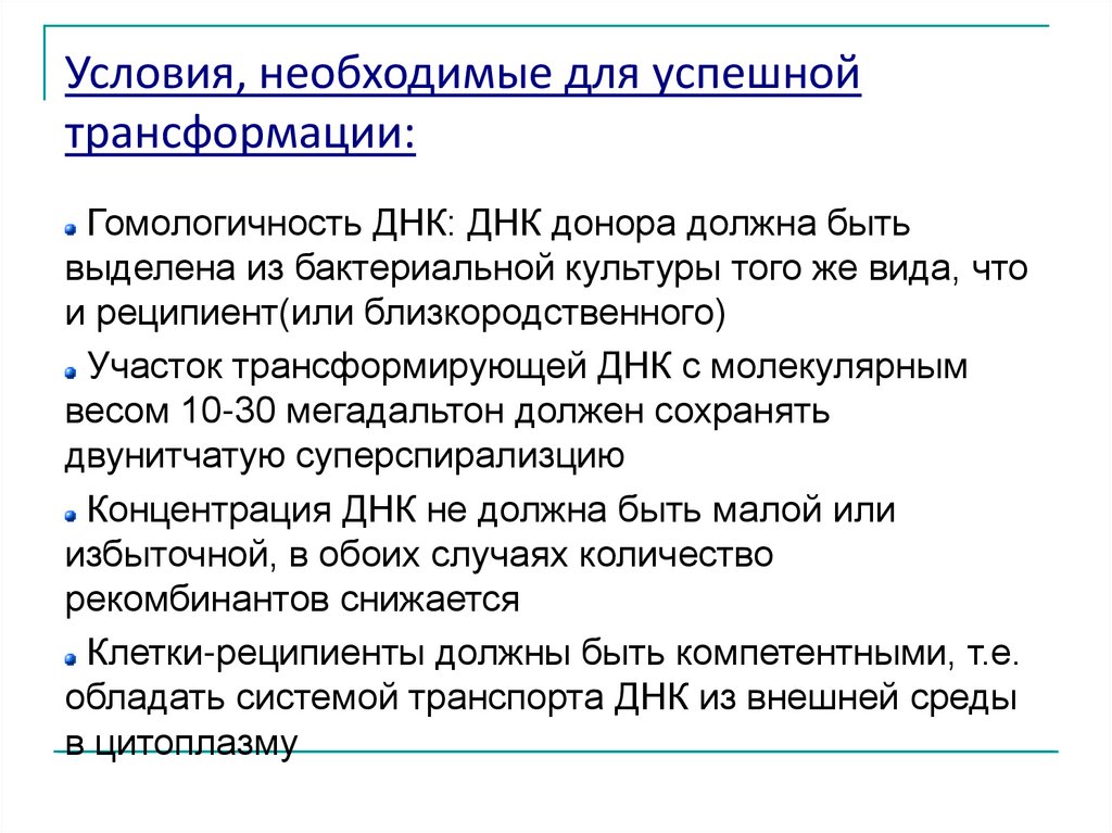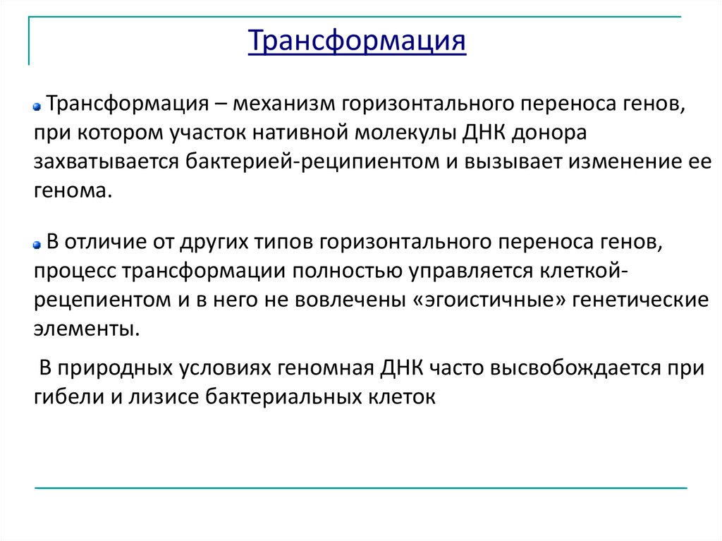 процесс трансформации полностью управляется клеткойрецепиентом и в него не вовлечены «эгоистичные» генетические