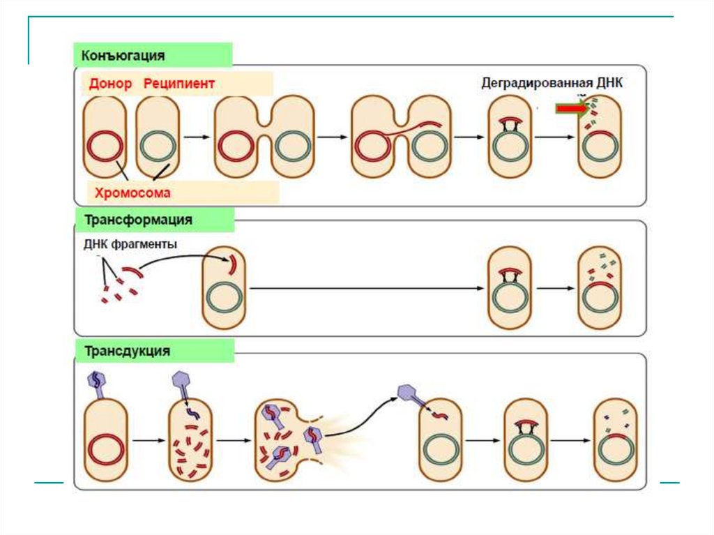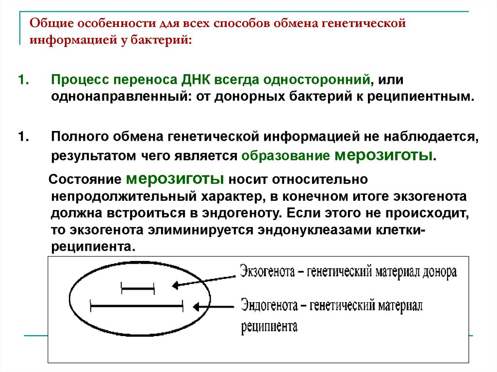 Общие особенности для всех способов обмена генетическойинформацией у бактерий: