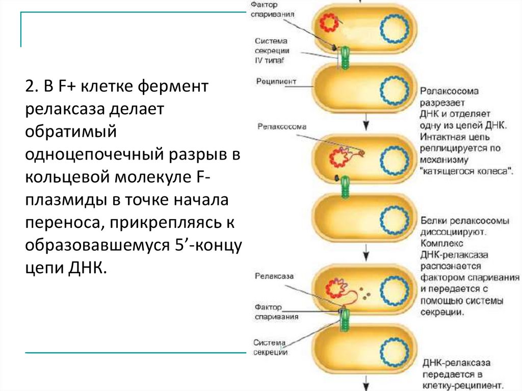 плазмиды (origin), затем разрывает одну цепь ДНК и