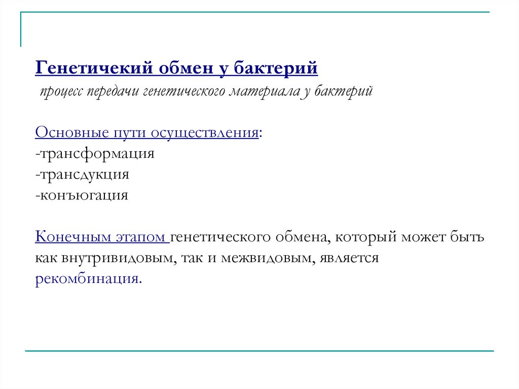 Генетичекий обмен у бактерийпроцесс передачи генетического материала у бактерий