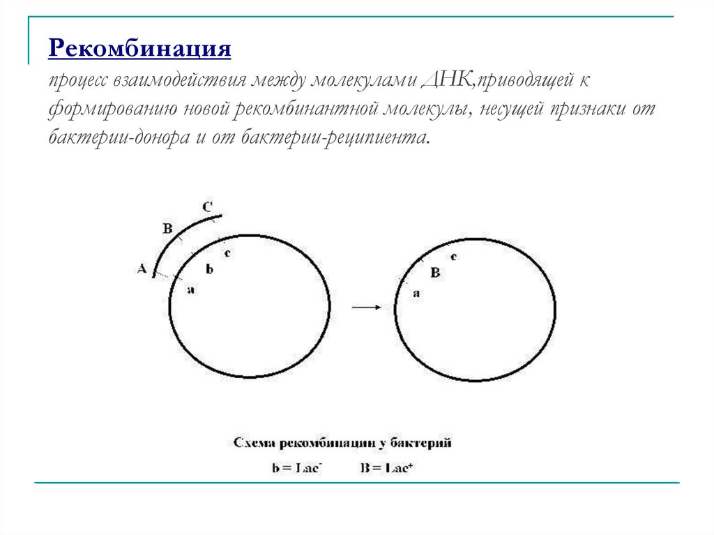 Рекомбинацияпроцесс взаимодействия между молекулами ДНК,приводящей к