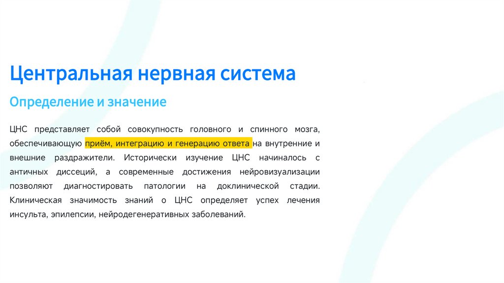 Клиническая значимость знаний о ЦНС определяет успех лечения