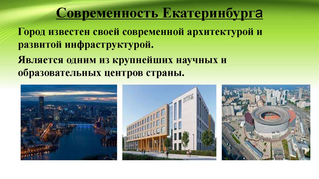 Современность ЕкатеринбургаГород известен своей современной архитектурой и