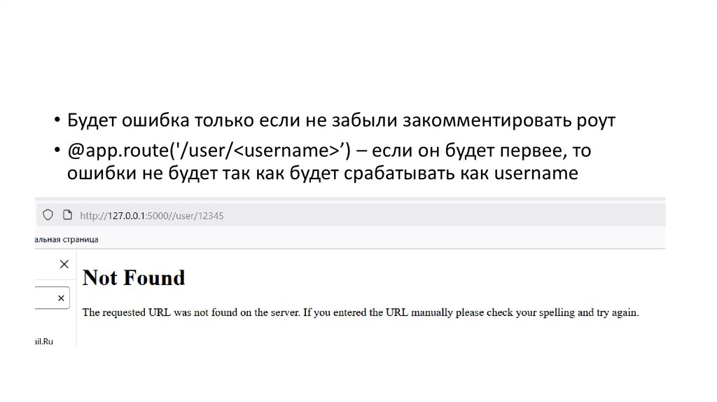 • Второй аргумент render_template — переменные.@app.route('/user/<name>’)