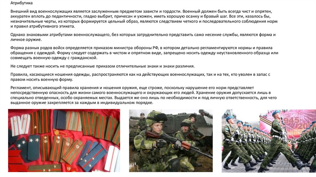 регламентируются. В современной российской армии, как и в любой государственной структуре, большое значение уделяется
