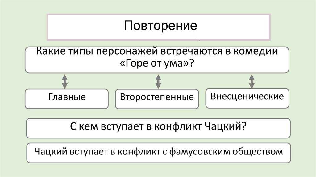 ПовторениеКакие типы персонажей встречаются в комедии