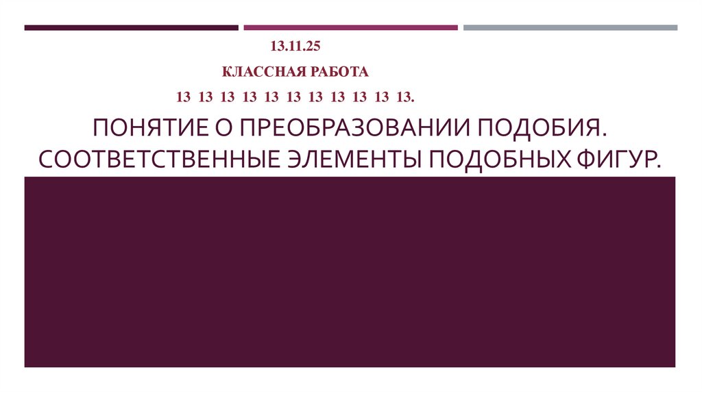 13.11 Презентация к уроку геометрии _Понятие о преобразовании подобия. Соответственные элементы подобных фигур._ (9 класс)