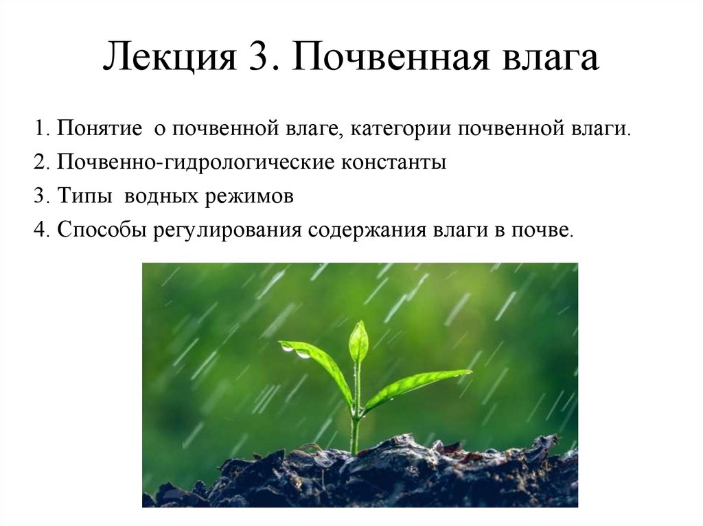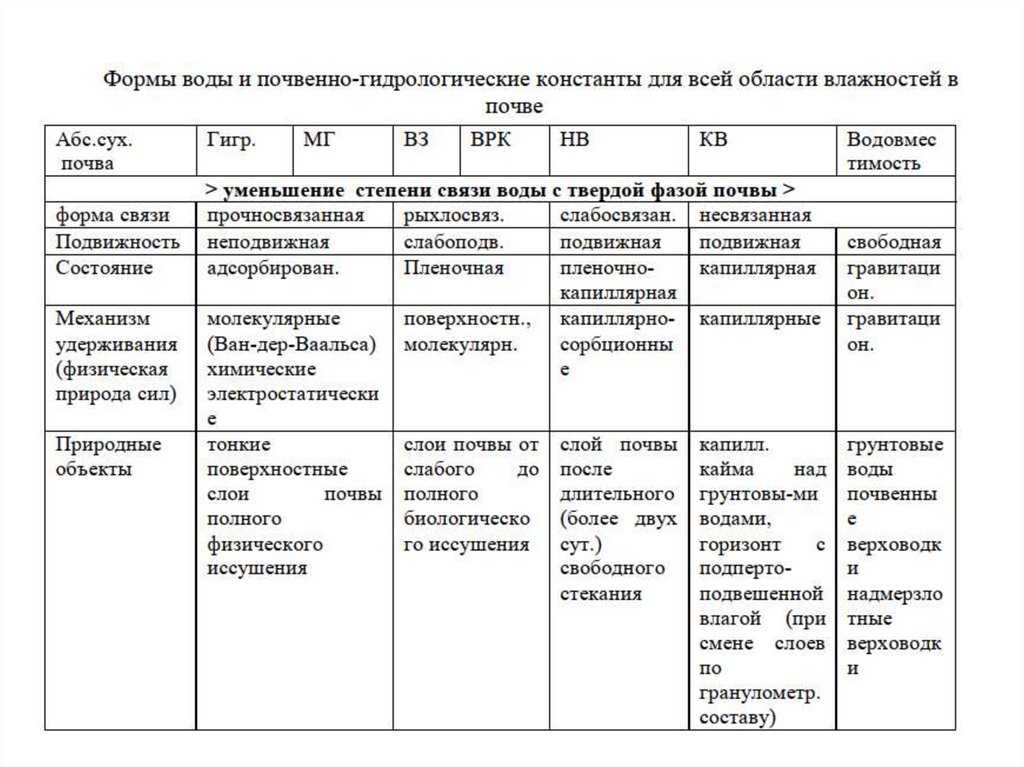 1. Понятие о почвенной влаге, категории почвенной влаги.2. Почвенно-гидрологические константы