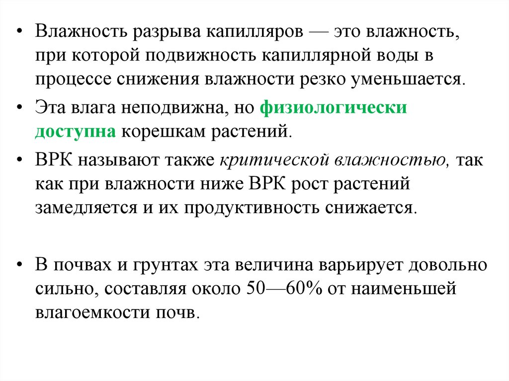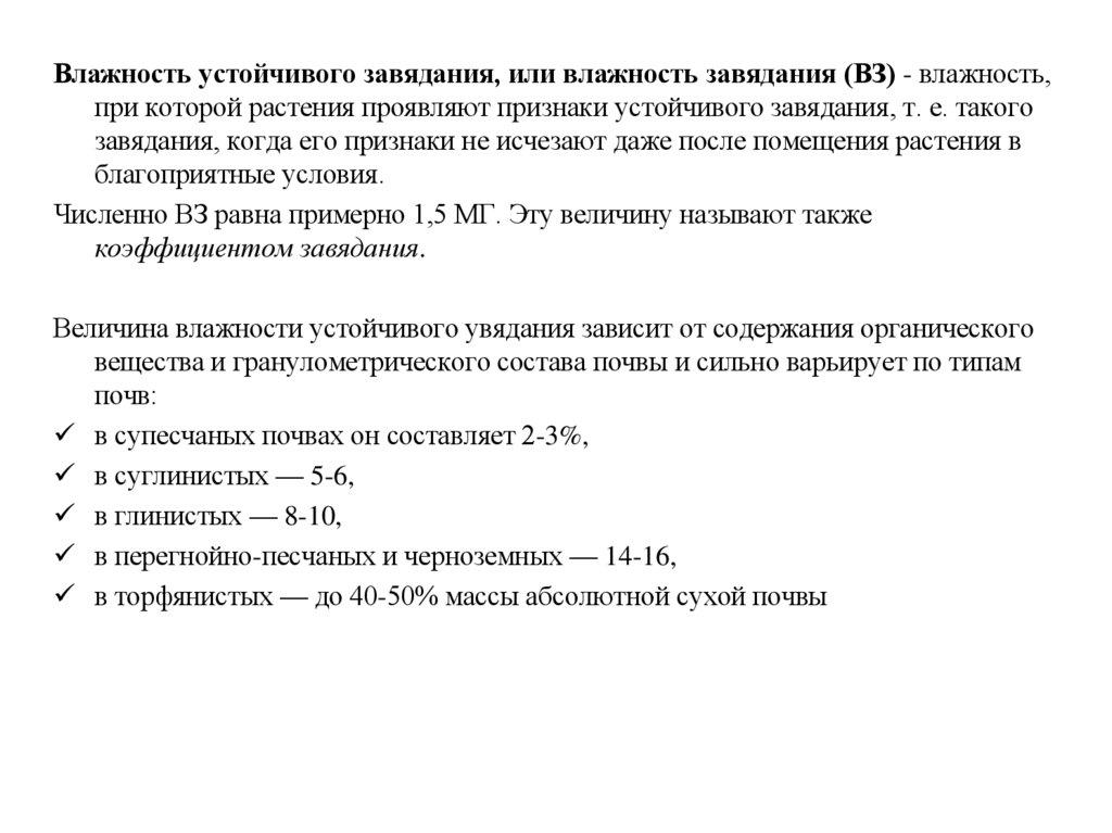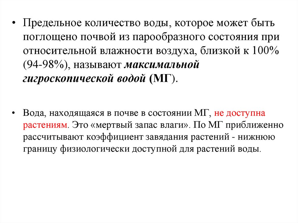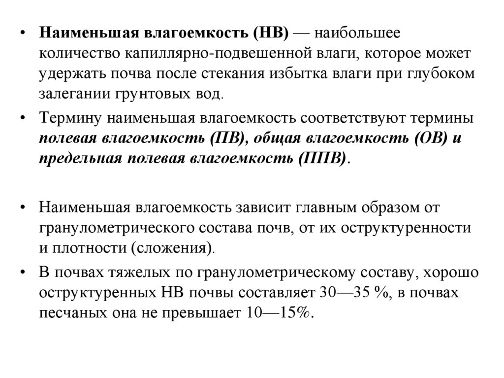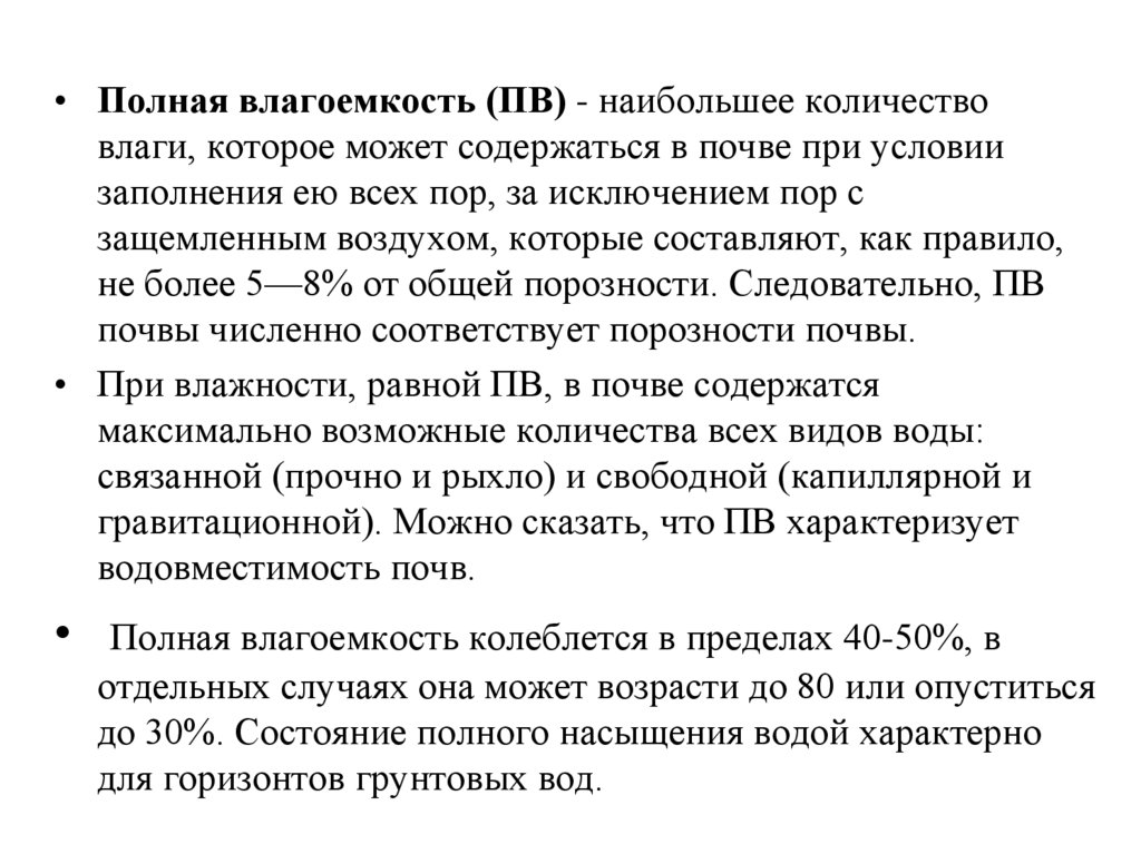• Влагоемкость -максимальное количество воды, удерживаемое в