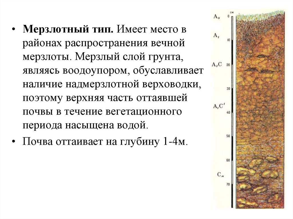 • Мерзлотный тип. Имеет место врайонах распространения вечной
