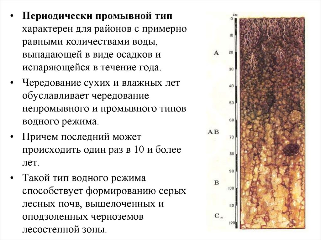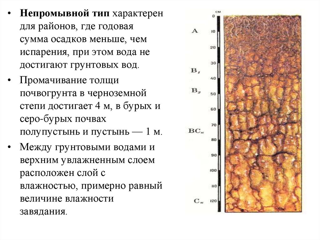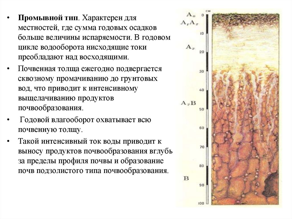 • Промывной тип. Характерен дляместностей, где сумма годовых осадков