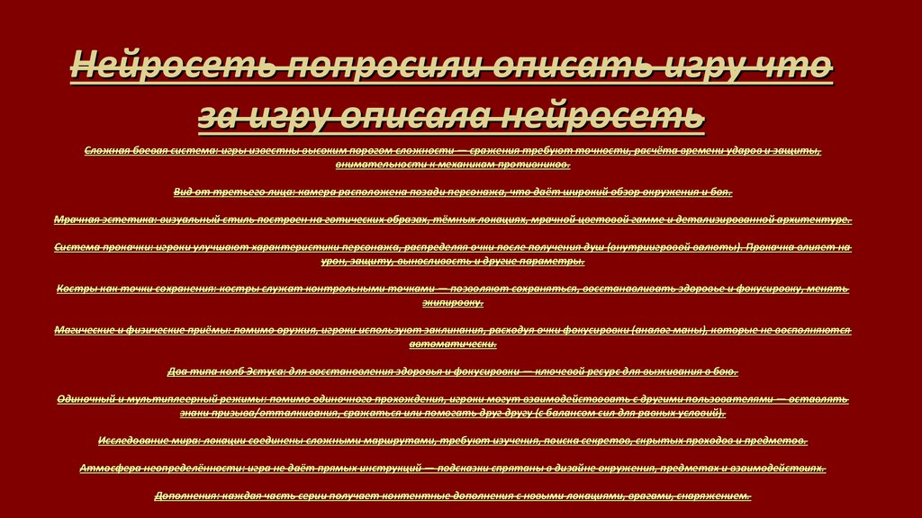 Нейросеть попросили описать игру чтоза игру описала нейросеть