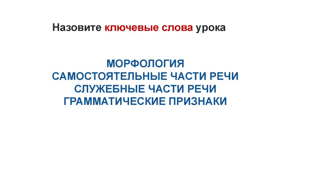 Назовите ключевые слова урокаМОРФОЛОГИЯ
