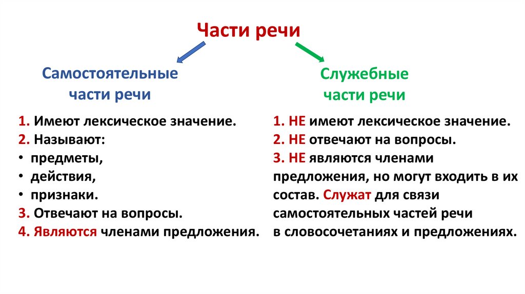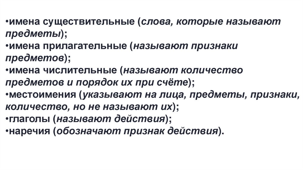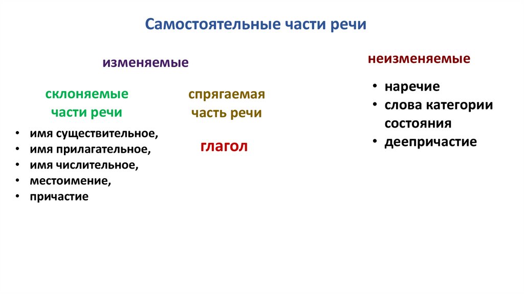 САМОСТОЯТЕЛЬНЫЕ ЧАСТИ РЕЧИ