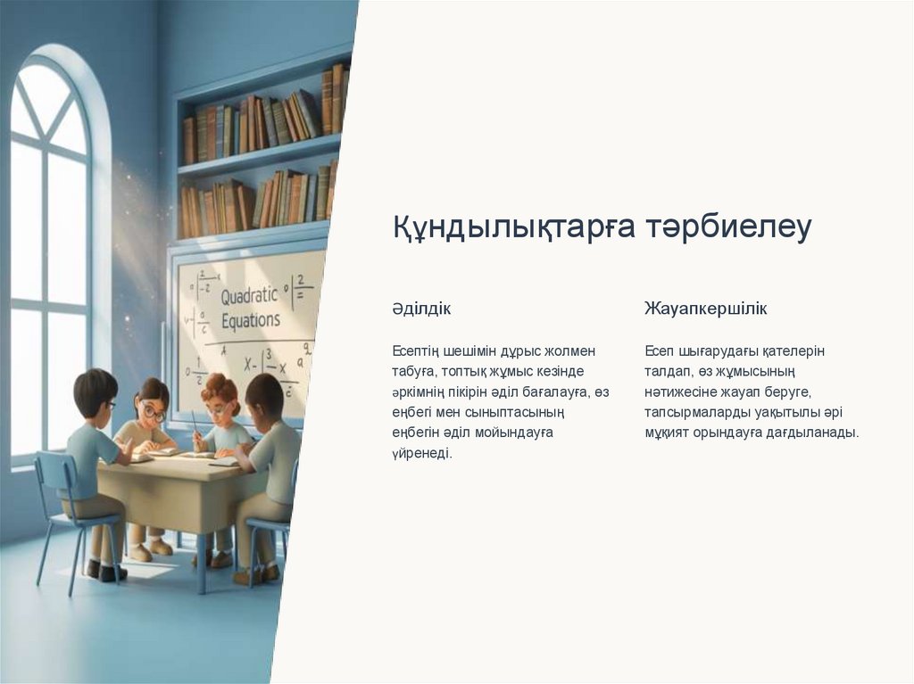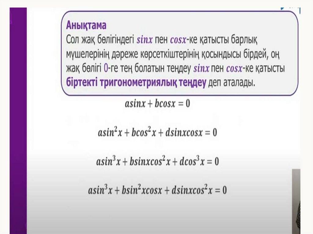 "Бүгін мен сабақта біртекті теңдеулер ұғымымен таныстым"