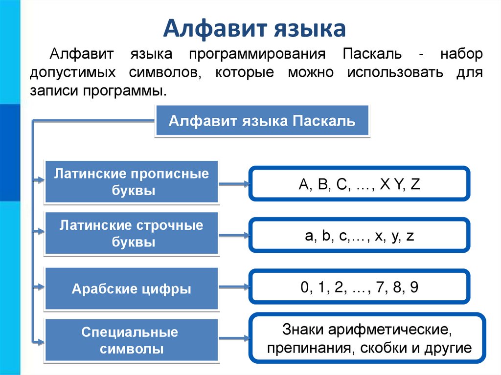 Алфавит языкаАлфавит языка программирования Паскаль - набор