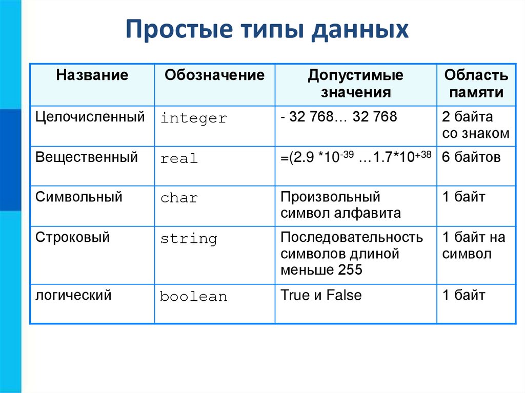 =(2.9 *10-39 …1.7*10+38 6 байтов