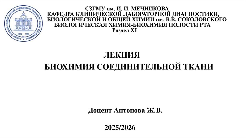 СЗГМУ им. И. И. МЕЧНИКОВАКАФЕДРА КЛИНИЧЕСКОЙ ЛАБОРАТОРНОЙ ДИАГНОСТИКИ,