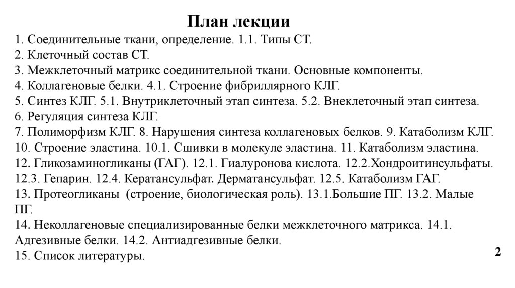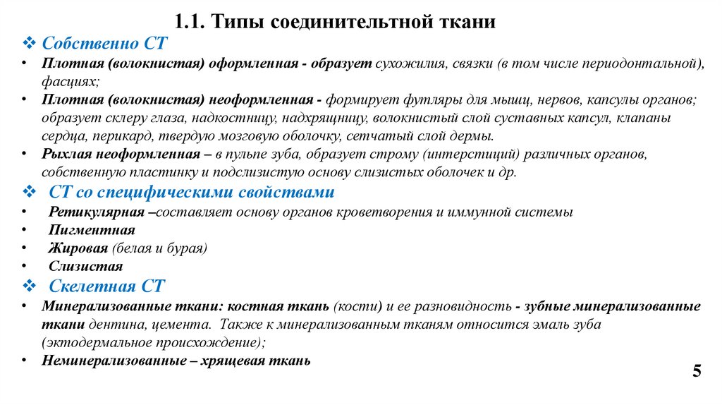 План лекции1. Соединительные ткани, определение. 1.1. Типы СТ.