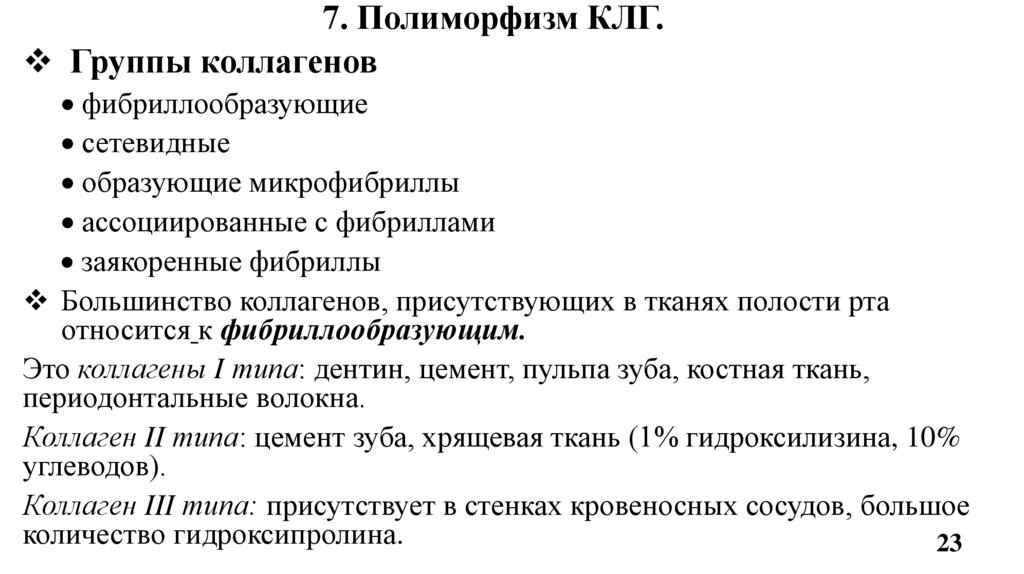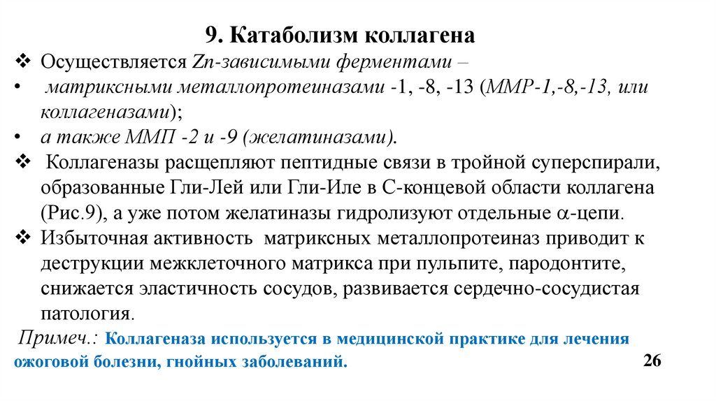7. Полиморфизм КЛГ. 8. Нарушения синтеза коллагеновых белков. 9. Катаболизм КЛГ.