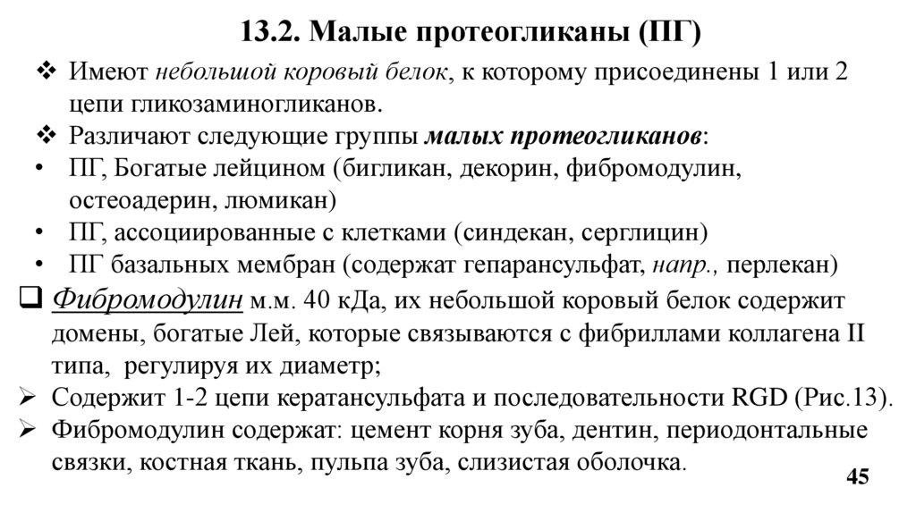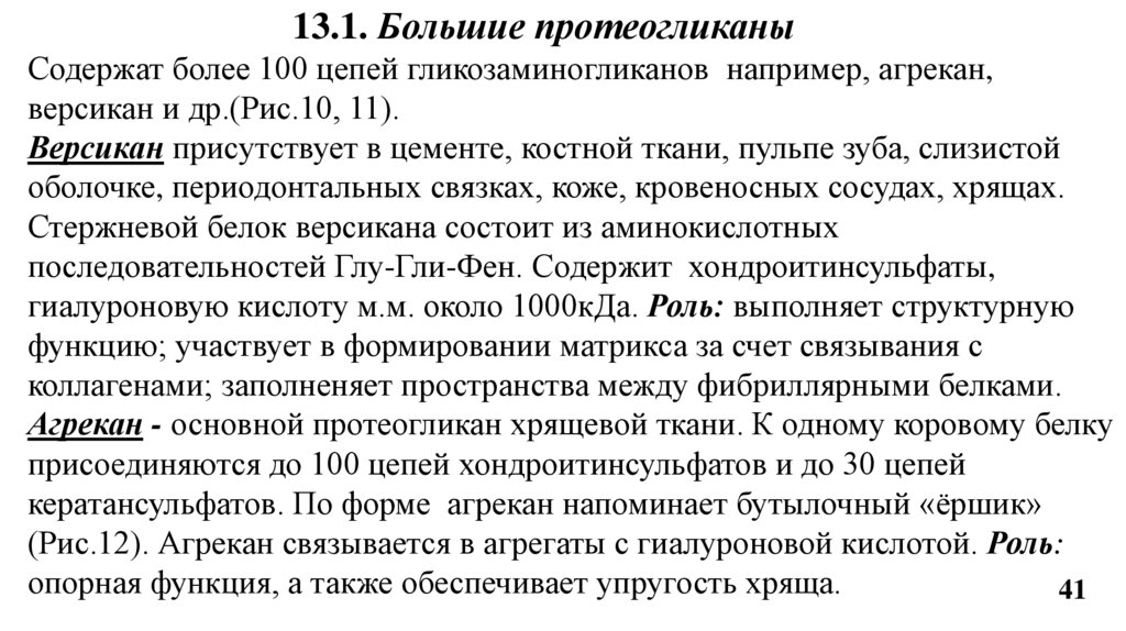 13. Протеогликаны (строение, биологическая роль). 13.1.Большие ПГ. 13.2. Малые