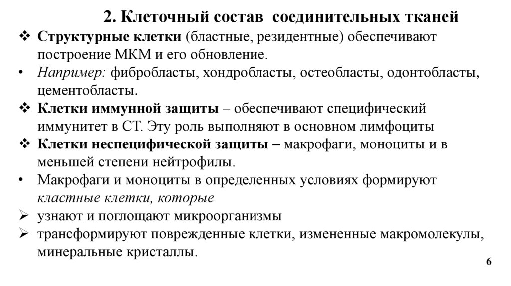 2. Клеточный состав соединительных тканейСтруктурные клетки (бластные, резидентные) обеспечивают