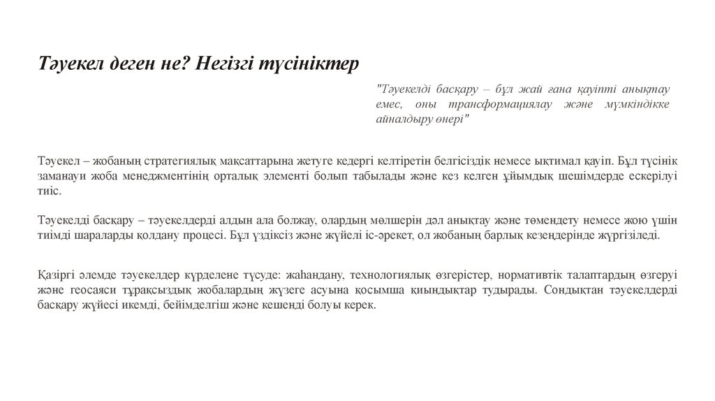Тәуекел деген не? Негізгі түсініктер"Тәуекелді басқару – бұл жай ғана қауіпті анықтау