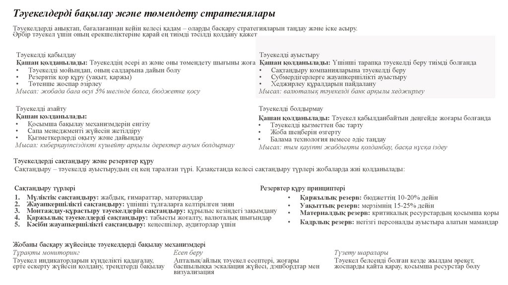 жүзеге асырылады, сондықтан тәуекелдерді алдын ала анықтау,