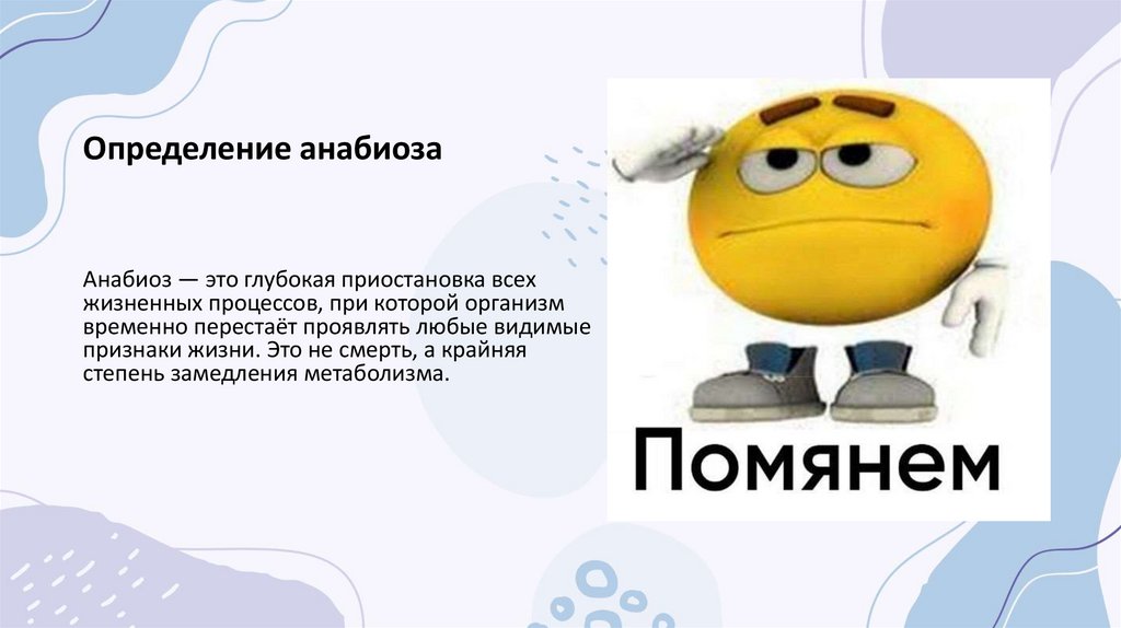 Определение анабиозаАнабиоз — это глубокая приостановка всех