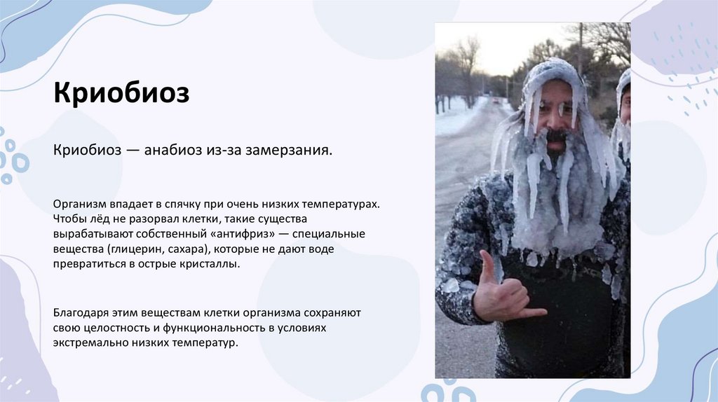 КриобиозКриобиоз — анабиоз из-за замерзания.