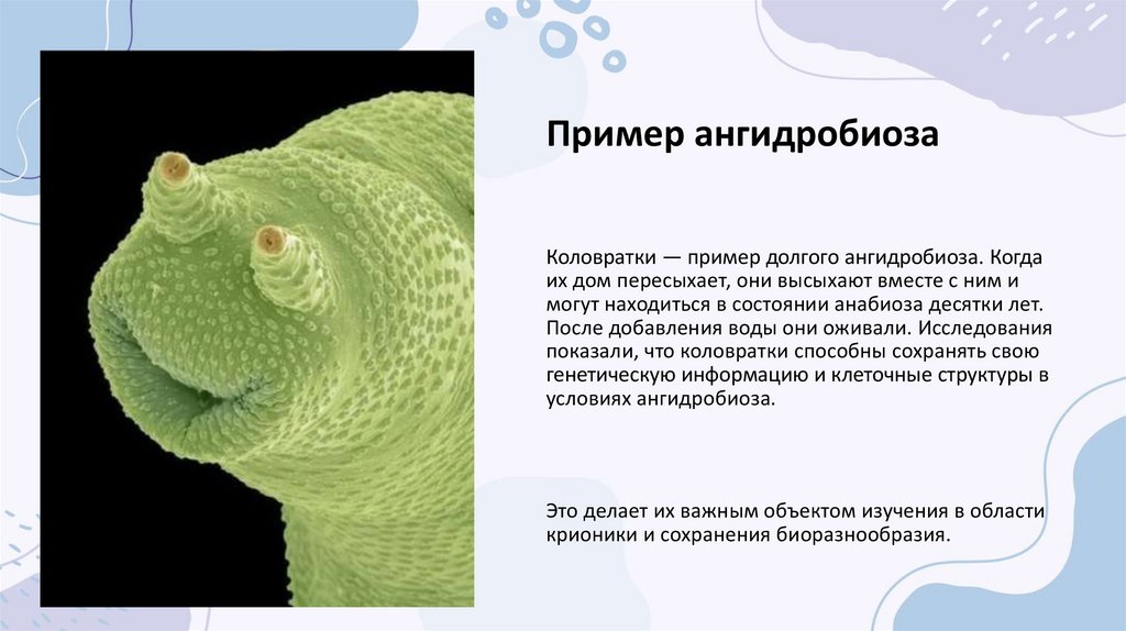 Пример ангидробиозаКоловратки — пример долгого ангидробиоза. Когда
