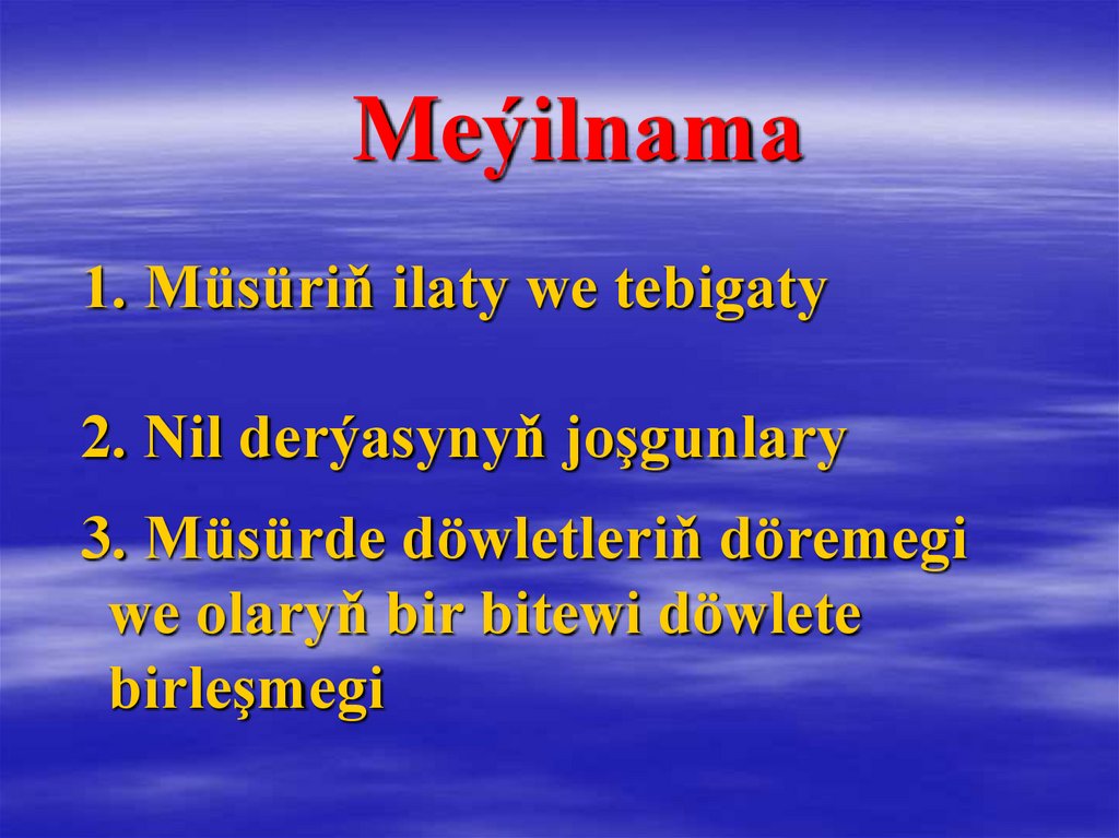 Meýilnama1. Müsüriň ilaty we tebigaty