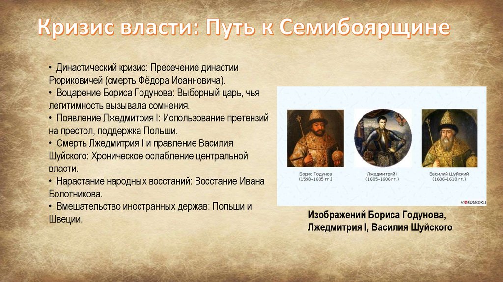 • Династический кризис: Пресечение династииРюриковичей (смерть Фёдора Иоанновича).
