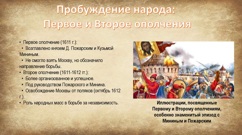• Первое ополчение (1611 г.):• Возглавлено князем Д. Пожарским и Кузьмой