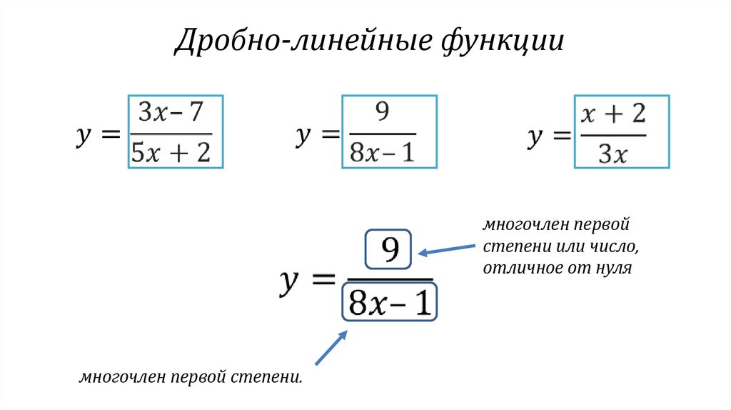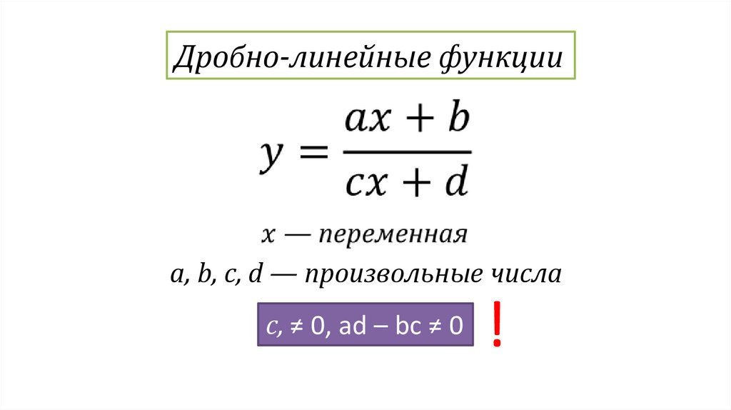 Дробно-линейные функцииa, b, c, d — произвольные числа
