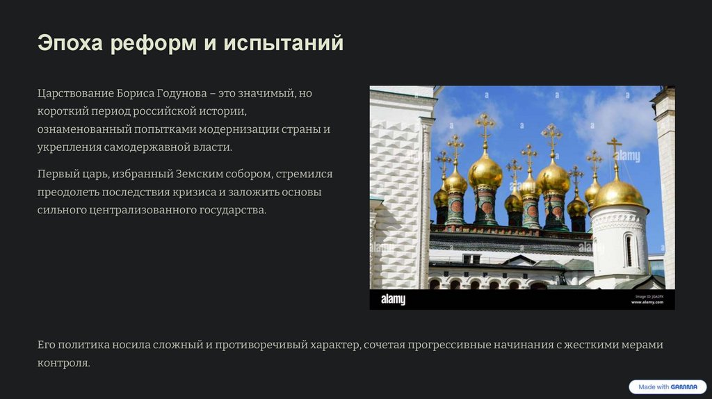 Эпоха реформ и испытанийЦарствование Бориса Годунова – это значимый, но