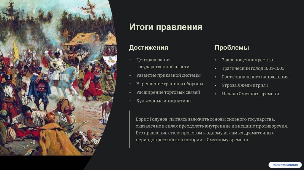 Борис Годунов, пытаясь заложить основы сильного государства,