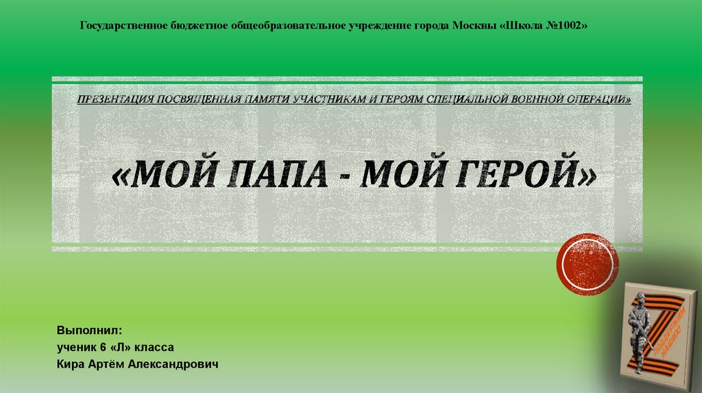 1. Презентация посвященная Памяти участникам и героям Специальной Военной Операции» «Мой папа - мой герой»