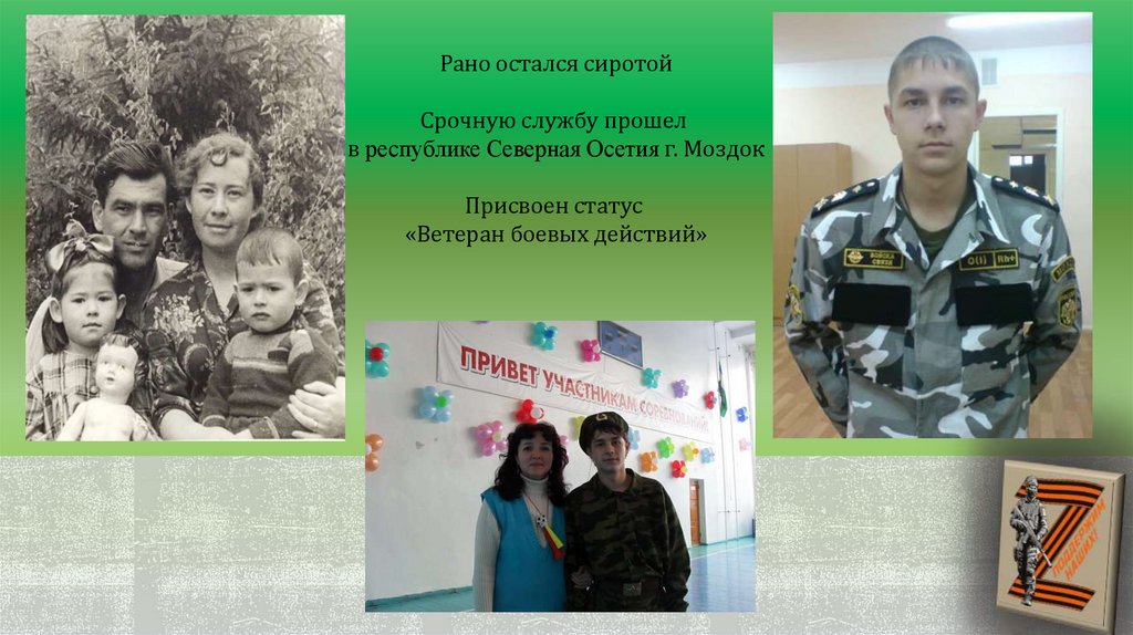 Рано остался сиротойСрочную службу прошел