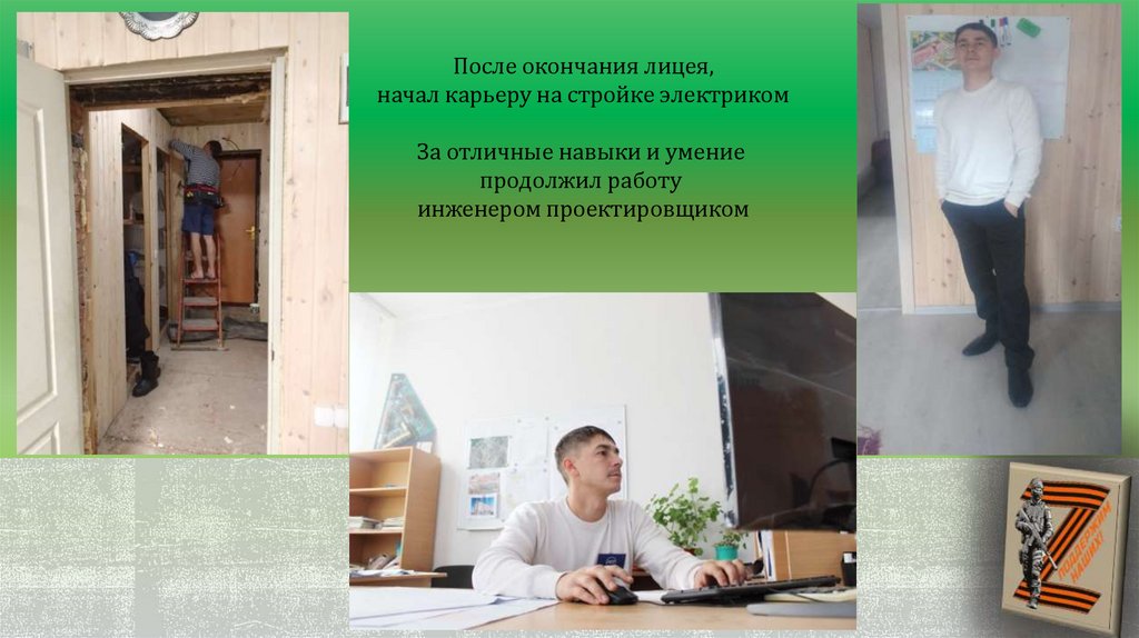 После окончания лицея,начал карьеру на стройке электриком