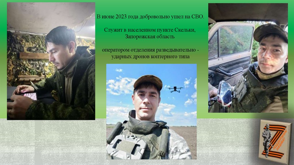 В июне 2023 года добровольно ушел на СВО.Служит в населенном пункте Скельки,