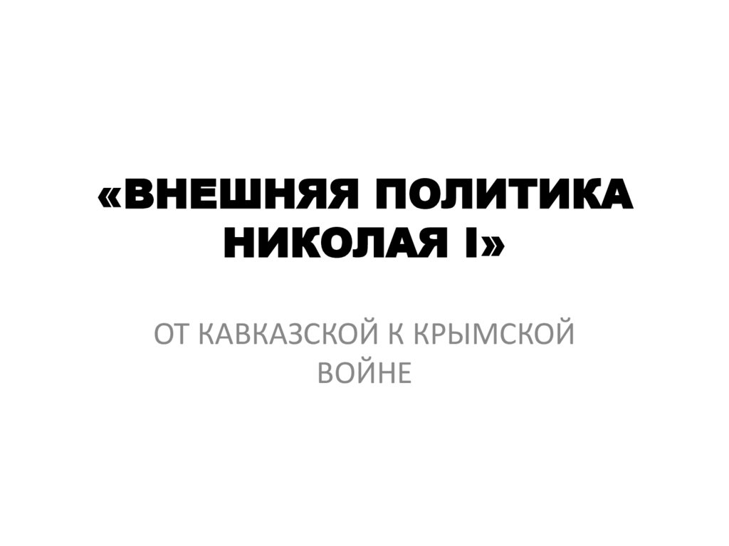 1. «ВНЕШНЯЯ ПОЛИТИКА НИКОЛАЯ I»