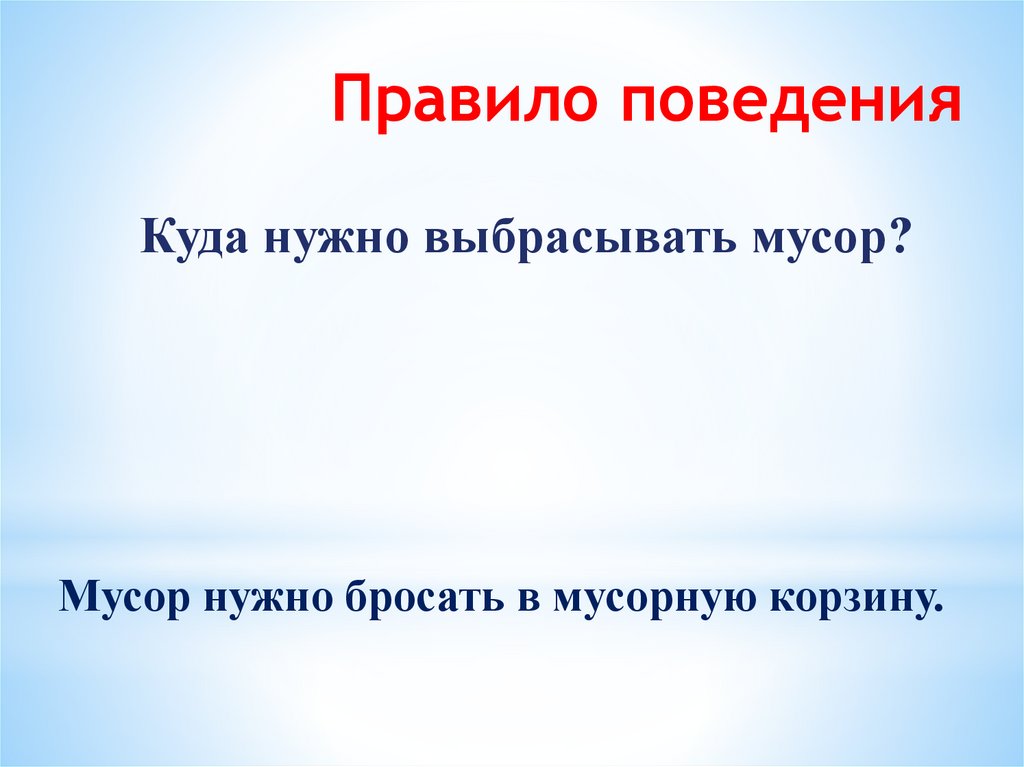 Правило поведенияКуда нужно выбрасывать мусор?