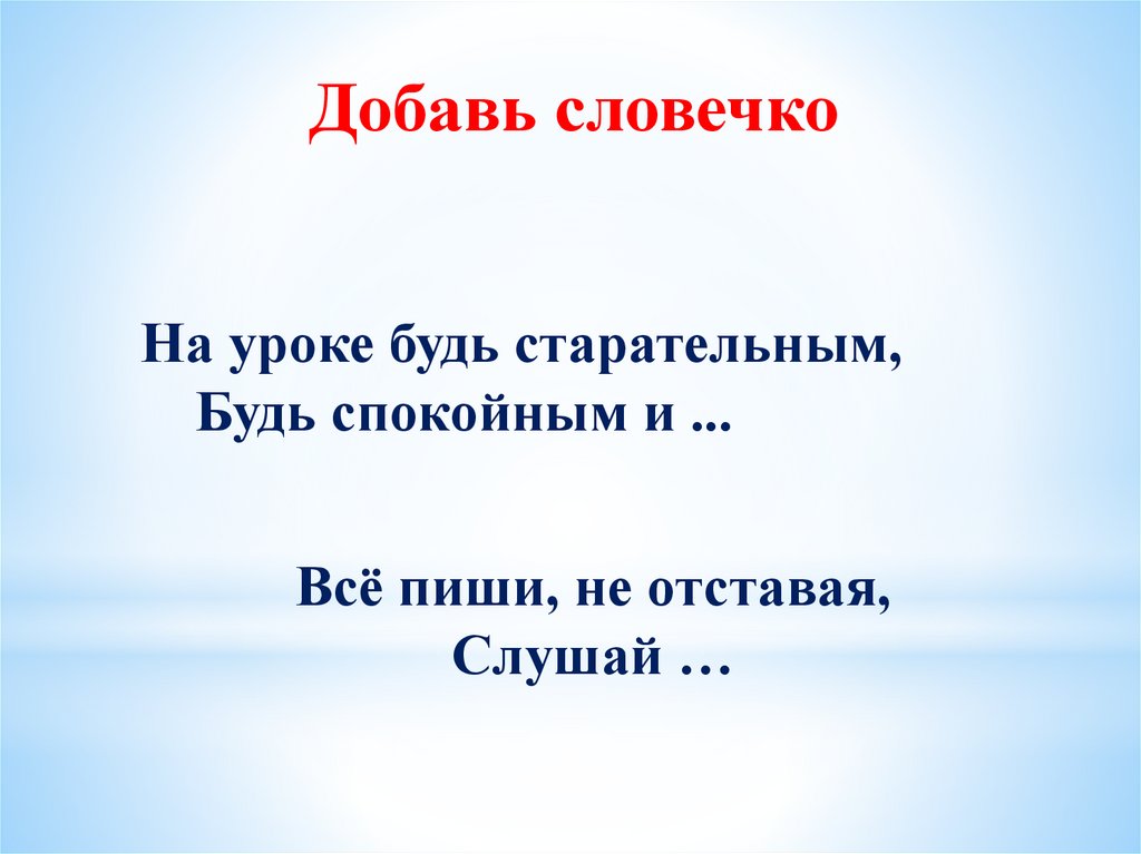 Добавь словечкоНа уроке будь старательным,