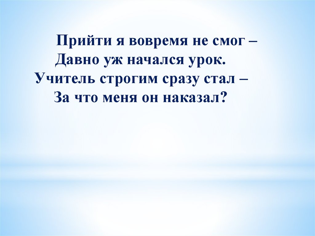 Прийти я вовремя не смог –Давно уж начался урок.