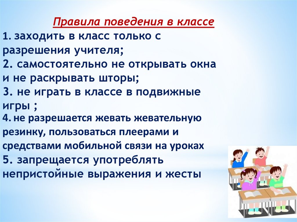 Правила поведения в классе1. заходить в класс только с
