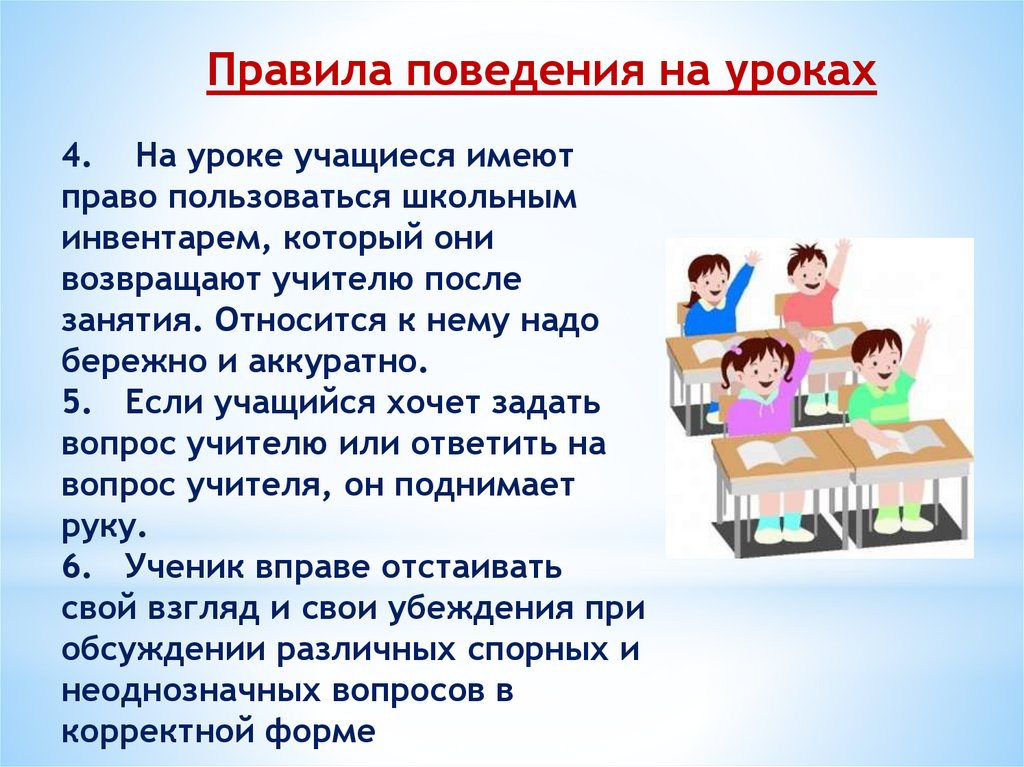 Правила поведения на уроках4. На уроке учащиеся имеют