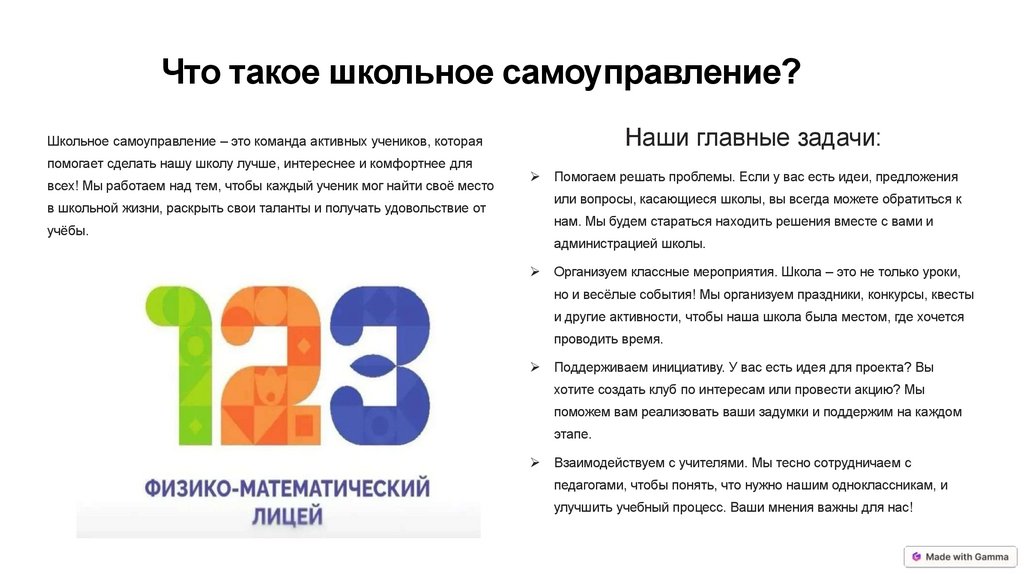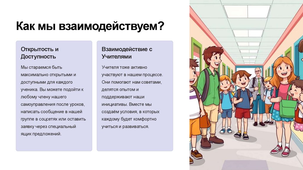 помогает сделать нашу школу лучше, интереснее и комфортнее для