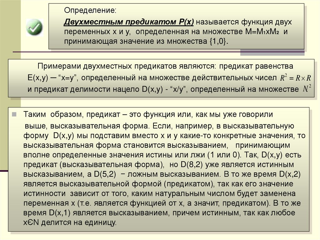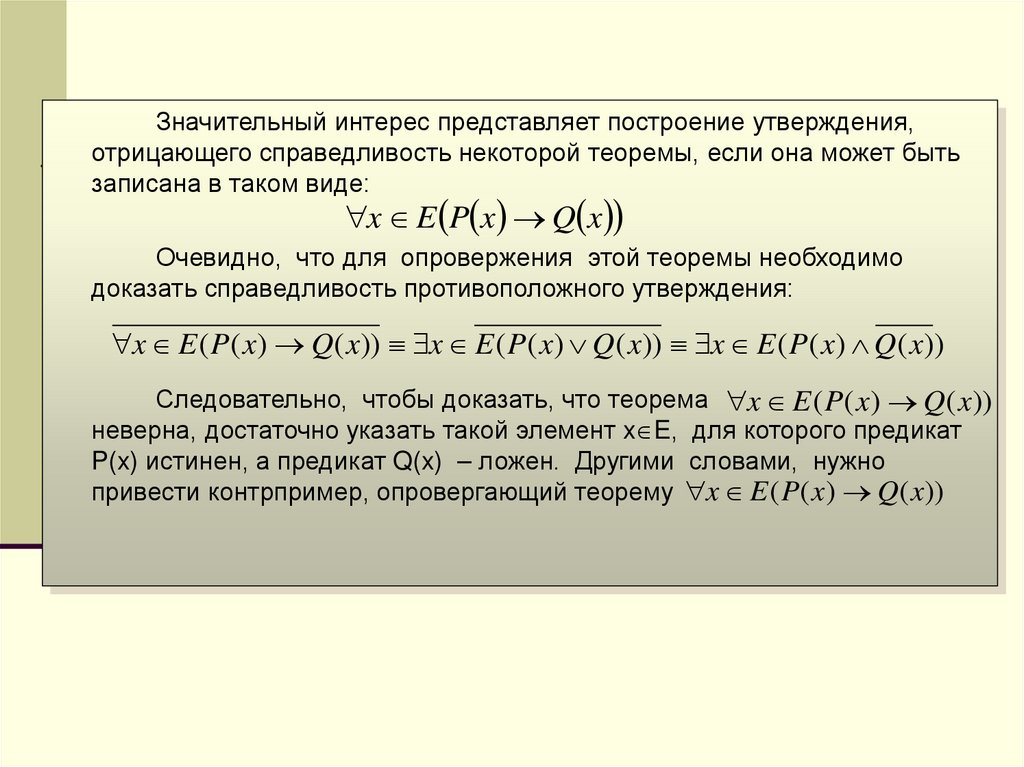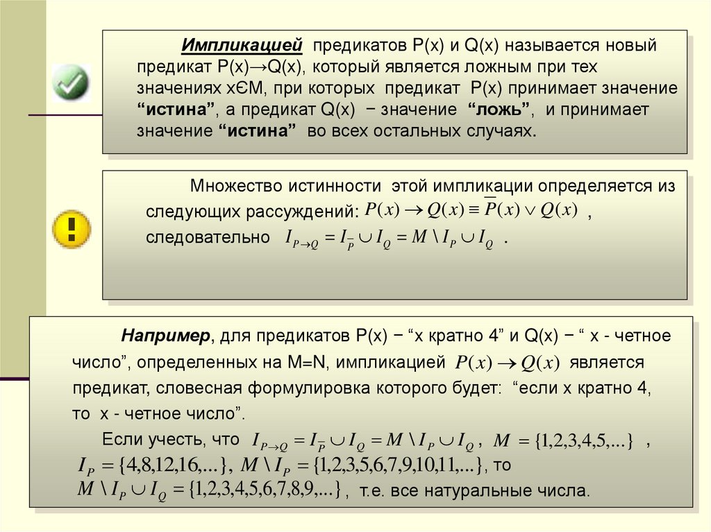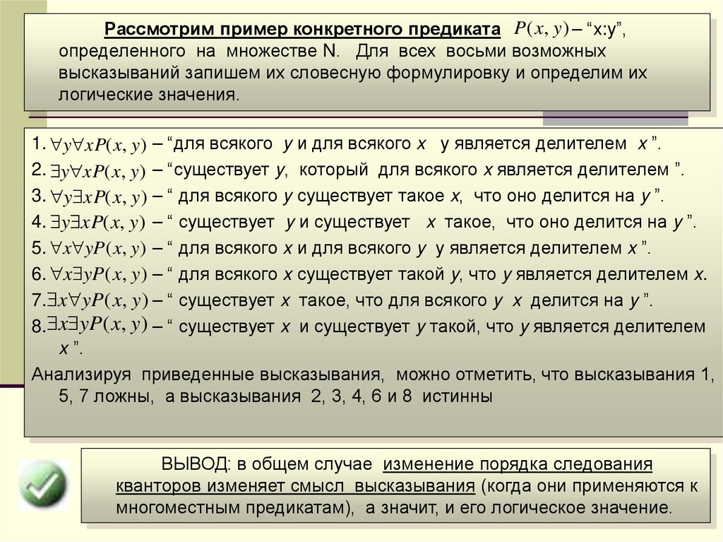 P(x) истинен, а предикат Q(x) – ложен. Другими словами, нужно