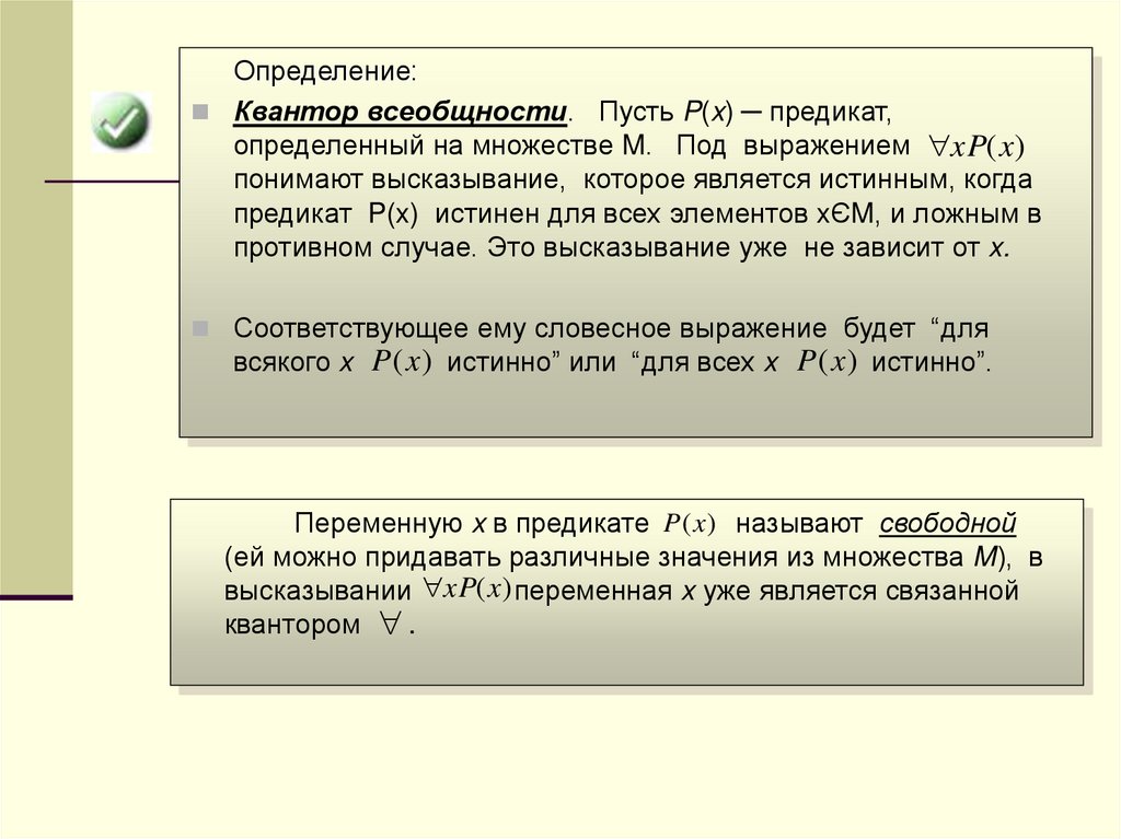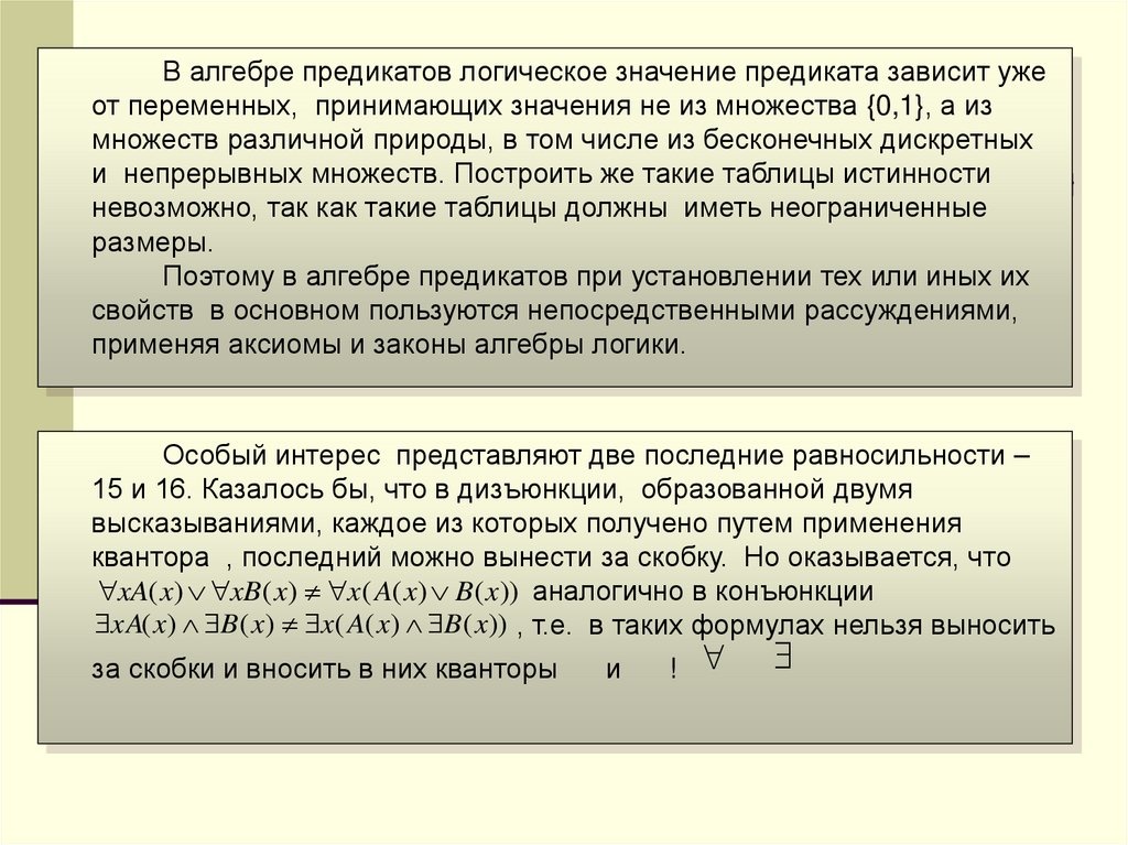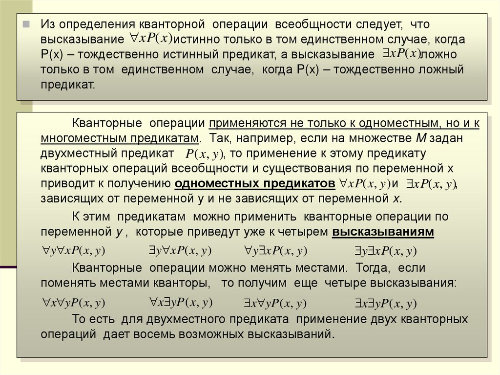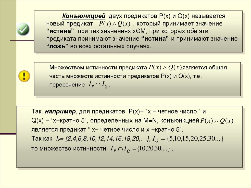 P(x) истинен, а предикат Q(x) – ложен. Другими словами, нужно
